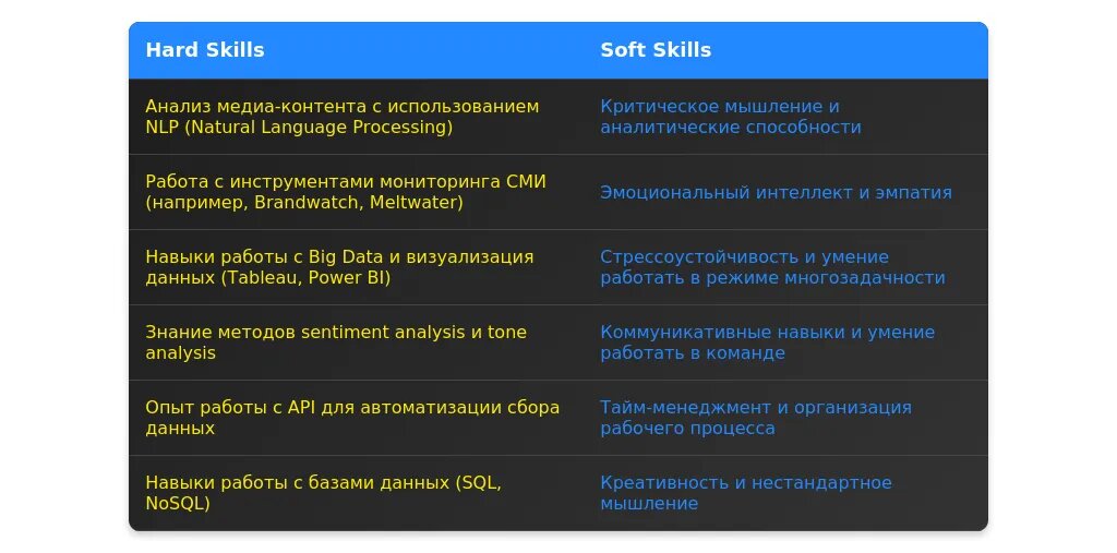 На что делать акцент: навыки работы с инструментами мониторинга (например, MediaScope, Brand Analytics), умение анализировать данные, базовые знания медиарынка.