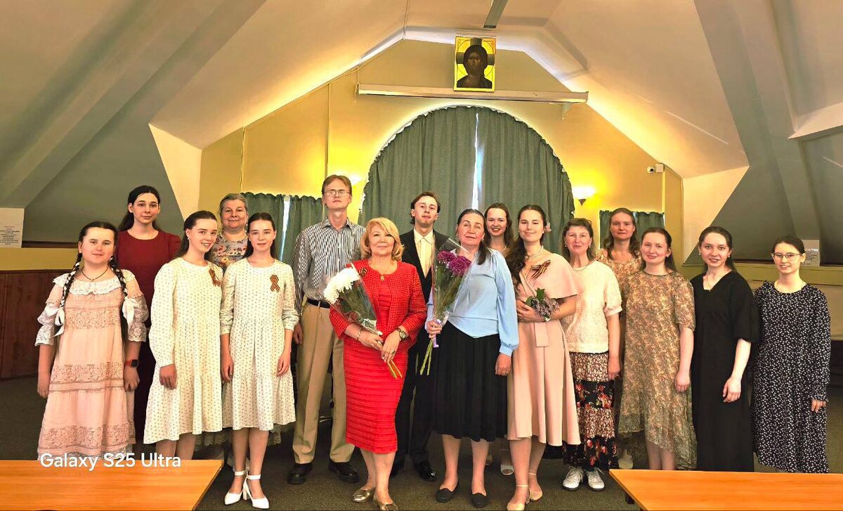 Весна Победы В праздник Вознесения Господня на факультете церковного пения прошёл вокальный концерт «Весна Победы», посвященный 80-летию Победы в Великой Отечественной войне. Выступали студенты класса профессора кафедры хорового дирижирования ФЦП, кандидата философских наук Ольги Петровны Колпиковой. Гости концерта услышали такие военные произведения, как Ариозо матери из кантаты «Нам нужен мир» А. Новикова, «Майский вальс» И. Лученка, два сольных номера из оперы К. Молчанова «А зори здесь тихие», а также другие произведения. Студентки V курса Анастасия и Василиса Бычковы и Варвара Столярова исполнили произведение В. Соловьева-Седова «Соловьи», отмеченное званием лауреата I степени на II Фестивале творчества православных студентов «Встреча». Студенты также исполнили романсы, арии, произведения русских и зарубежных композиторов. Партию фортепиано исполняла концертмейстер класса Ксения Георгиевна Сурайкина.