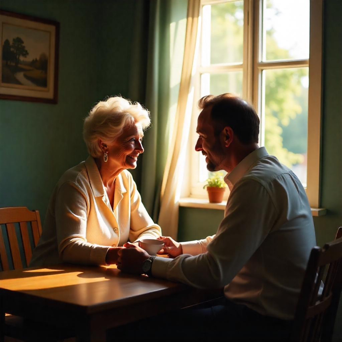 В это время в прихожей появляется Артём. Смотрит на нас — руки дрожат, лицо напряжённое. И вдруг — будто сделав над собой усилие — он опускается на стул и впервые за долгое время говорит не учительским тоном: — Главное, чтоб вы были счастливы, мам. Правда… — Правда, сынок, — отвечаю я.