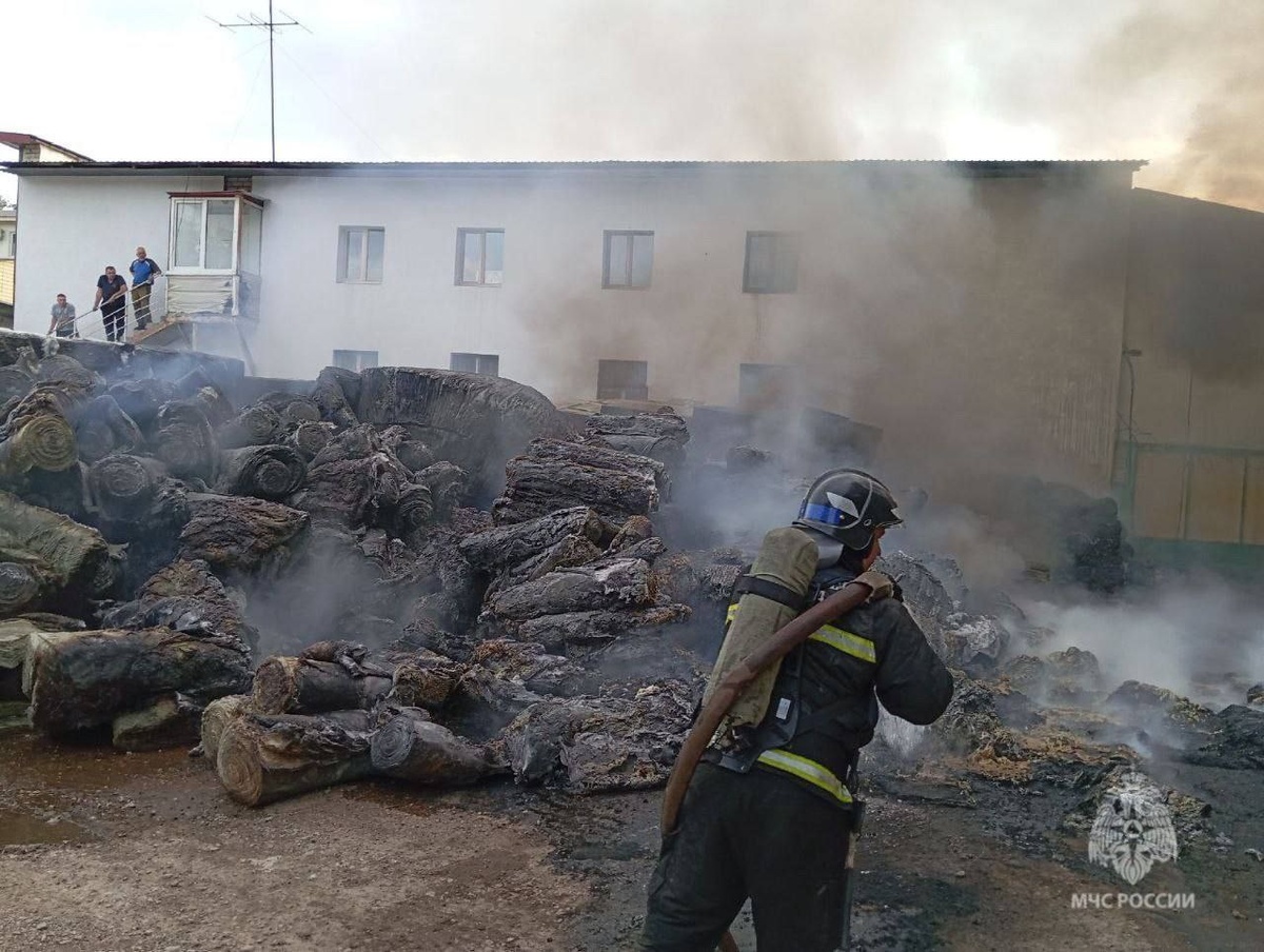 Огнеборцы МЧС России тушат загоревшуюся минеральную вату в Стерлитамаке