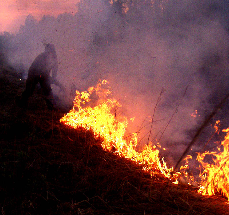 Но погода, как говорится, только способствует. Поджигают люди. Случайно ли, преднамеренно, но именно они. За исключением, конечно, двухпроцентного «природного фактора»: молнии, самовозгорания гниющих растительных остатков и тому подобныхнеприятных сюрпризов, характерных к тому же только для летних месяцев, никак не для мая. Жители деревень выжигают покосы, палят прошлогоднюю солому. А со стоящей на краю поля скирды огонь легко перекидывается на сухую лесную подстилку и...