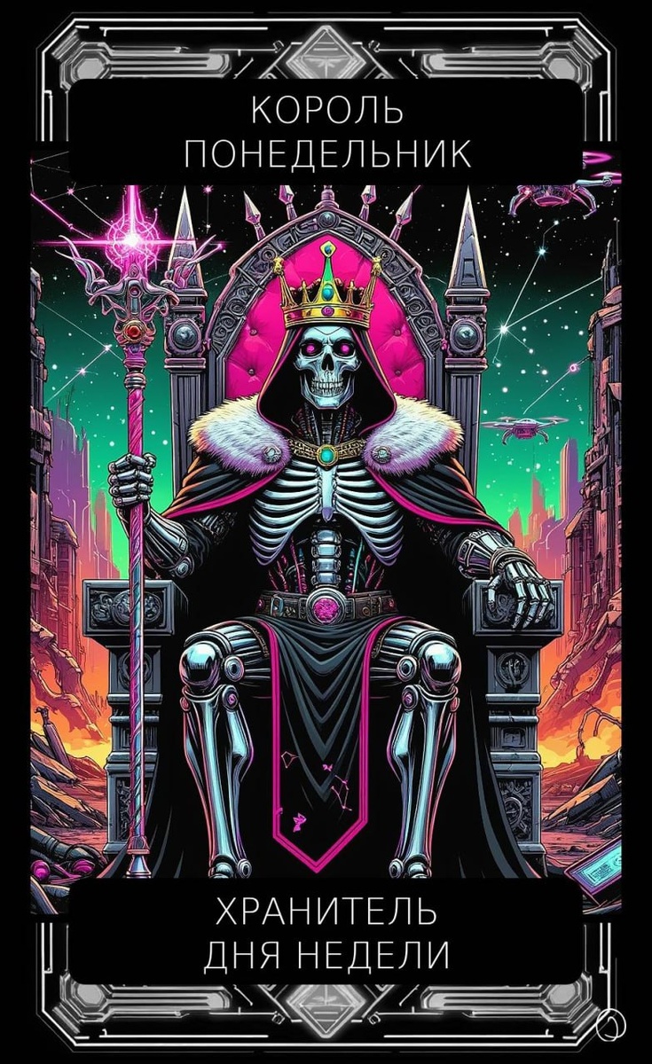 Придумал - Титулы (с привязкой смайлика) для каждого Дня Недели - Король Понедельник 👑 - Герцог Вторник ⚔️ - Графиня Среда 🌙 - Рыцарь Четверг 🛡 - Принцесса Пятница 🎉 - Барон Суббота 🧟 - Император Воскресенье ☀️ Есть идей-ка написать рассказа (может и небольшую повесть на 7 глав) по этим Титулам. В иллюстрациях можно посмотреть как выглядят эти дни недели в моём представлении (и в возможном будущем рассказе). P.s. Про Барона Суббота - идею заимствовал в одной книге - там было только упоминание Б.С. без описания, остальное сам додумал... (+смайл я привязал), честно признаю, а остальные дни - 100% моё. Тема: Дни Недели и Титулы Автор: О.Ник Велс Дата: 31 мая 2025 в 18:12 Примечание: Заметки на полях Тэги: #Понедельник #Вторник #Среда #Четверг #Пятница #Суббота #Воскресенье #днинедели #идея #неделя #титул #титулы