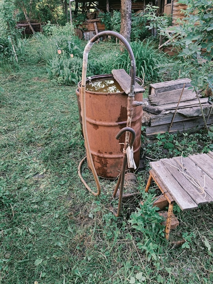 Было - стало. Водопровод для полива на даче был выполнен из стальных труб. Подключение к магистрали при помощи гибкой подводки. В последние пару лет заметно снизился напор воды, хотя у соседей был нормальный, но для огородных целей хватало. В этом году вода из крана течь перестала практически совсем (образовалась непроходимость в трубах). Кроме того, образовалась такая красота практически по всей длине трубы (около 8 метров): Придется менять. Самый дешевый материал для реконструкции водопровода, если делать из нового, водопровод из ПНД труб диаметром 20 мм. Работать с полиэтиленом одно удовольствие - всё получается очень быстро и с минимумом инструментов. На старых дачах всегда полезно иметь запас старых кранов, сгонов, прокладок и труб. Рано или поздно всё пригождается. В моём случае пришлось заменить металлический сгон из закромов, так как старый был в состоянии, схожем с состоянием трубы. Выпуск воды с подключенным шлангом: Пока оставили один водораздаточный узел. Трубу ничем не к