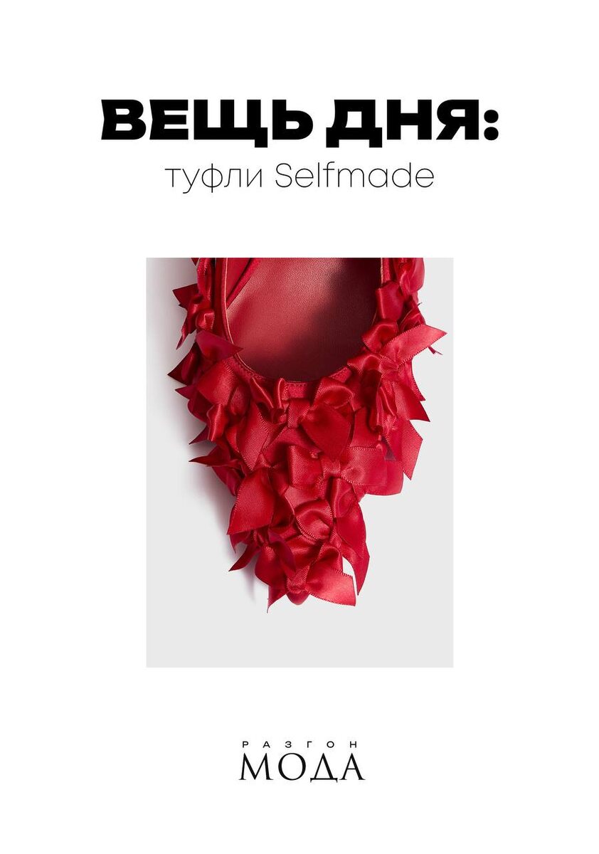Несем крутейшие лодочки с не менее крутейшим названием, dancing on the table, бренда Selfmade! Яркие, текстурные, с россыпью атласных бантиков — они будто созданы для того, чтобы входить эффектно и оставаться в центре внимания весь вечер. Колодка выглядит удобной, каблук вполне подходит для танцев до утра. Идеальный вариант, если хочется нарядиться не по случаю, а просто потому, что сегодня праздник — это вы. #РазгонМода_ВещьДня