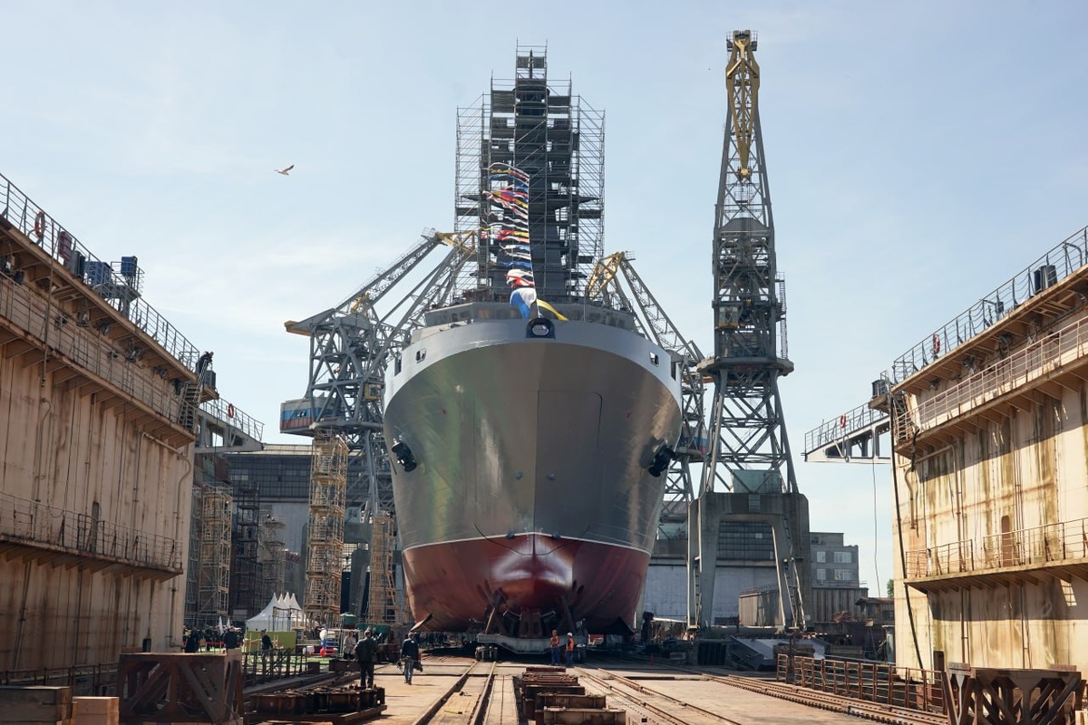 В Калининграде состоялся торжественный спуск на воду большого десантного корабля проекта 11711 «Владимир Андреев». В церемонии принял участие главнокомандующий ВМФ России адмирал Александр Моисеев.