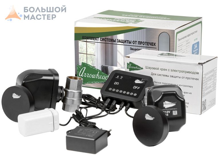 Владельцы квартир и домов думают: а что, если прорвет трубу или потечет шланг? Это касается тех, у кого дома есть посудомоечная или стиральная машина, водонагреватель или старые трубы. Даже если Вы аккуратный хозяин, исключить риск аварии невозможно. Представьте: Вы на работе, а в это время вода начинает разливаться по полу, проникает в соседские квартиры, портит мебель, отделку и технику. Последствия будут дорогими и неприятными. Чтобы навсегда избавиться от таких страхов, стоит обратить внимание на специальное решение — Arrowhead. Это система, которая следит за протечками и моментально блокирует воду, если что-то пошло не так. Причем делает это без участия владельца, даже если дома никого нет. Arrowhead — это набор из датчиков, управляющего блока и кранов с электроприводами. Датчики размещаются в самых уязвимых местах: около машин, бойлеров, под раковинами, рядом с трубами. В нормальном режиме они «дежурят» и ничего не предпринимают. Но если на полу появляется влага, например, из-за