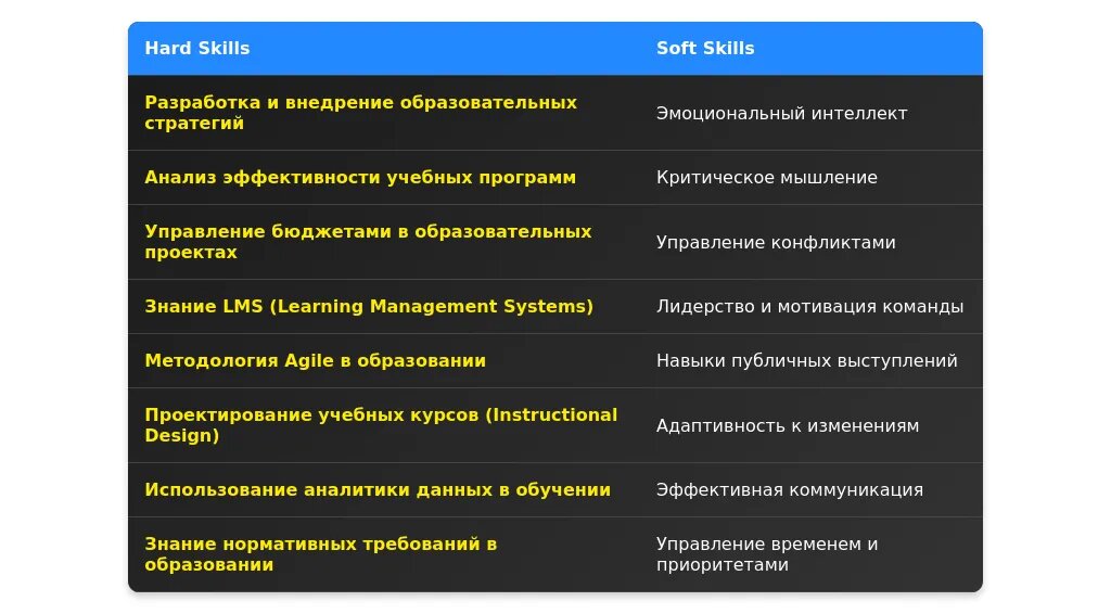 После адаптации: "Управление образовательными проектами, разработка учебных программ, внедрение Agile-подходов, знание LMS-систем."