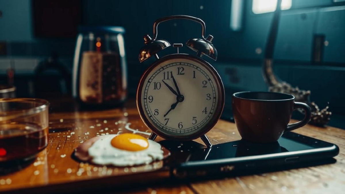 Утро: Звон будильника режет слух. Веки слипаются будто намазанные медом. Пальцы нащупывают телефон — экран бьет в глаза холодным светом.