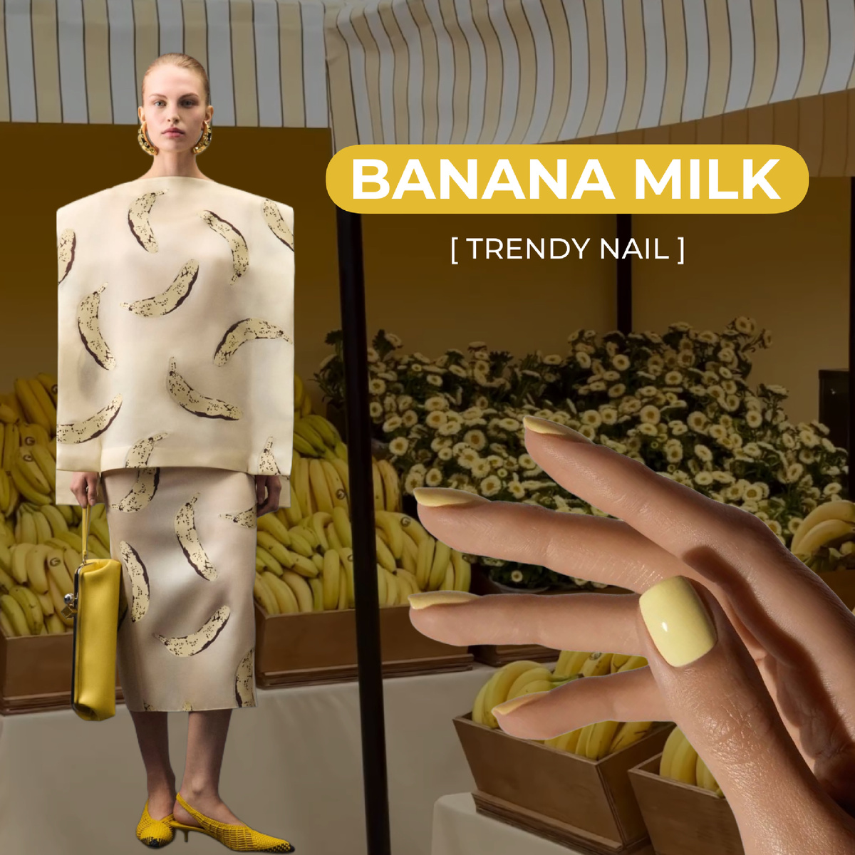 Кажется, пора добавить банановое молоко в свое летнее nail-меню🍌 В сети активно обсуждают новый микро-тренд на лето – оттенок «banana milk» По сути, это производный цвет от «сливочного масла», только адаптированный к лету: более яркий, сочный и солнечный. Он уже мелькает в образах инфлюенсеров, встречается в макияже и новых коллекциях одежды, задавая настроение сезона! В мире маникюра оттенок banana milk (банановое молоко) — это новая альтернатива классическому нюду, которая освежает образ и при этом остаётся универсальной. Как носить banana milk? Простой оттенок, который делает маникюр заметным 💛