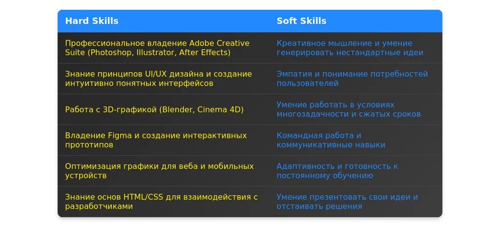 На какие навыки делать акцент: Основные технические навыки, такие как Figma, Adobe Photoshop, HTML/CSS.
