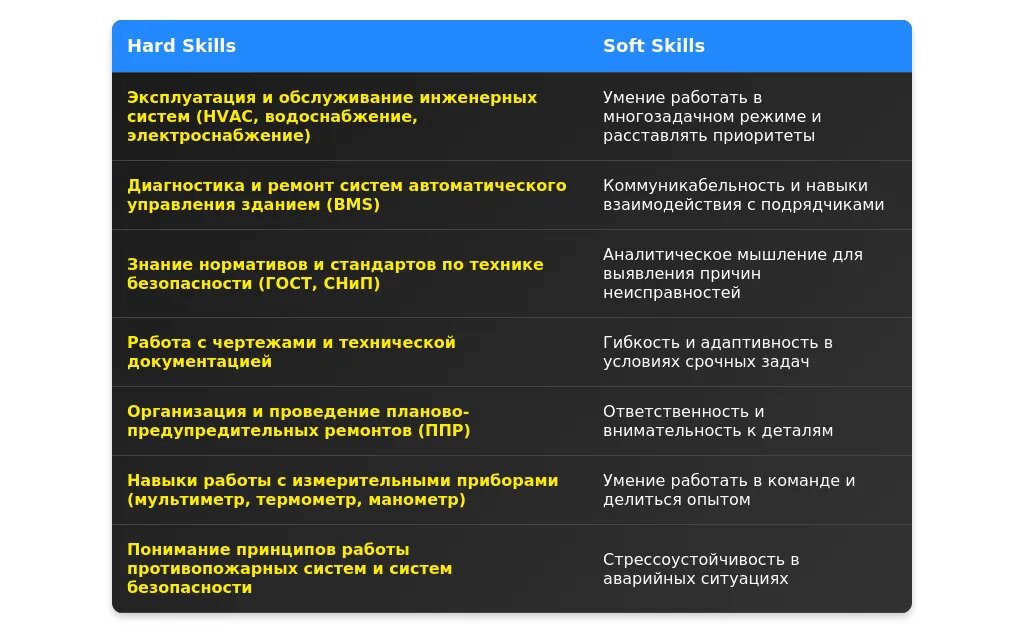 При анализе вакансии важно выделить ключевые требования, разделяя их на обязательные и желательные. Обязательные требования — это навыки и опыт, без которых кандидат не сможет выполнять основные обязанности, например, знание систем отопления, вентиляции и кондиционирования (HVAC) или опыт работы с электропроводкой. Желательные требования — это дополнительные компетенции, которые повышают шансы на успех, например, знание программ учета или опыт управления подрядчиками.