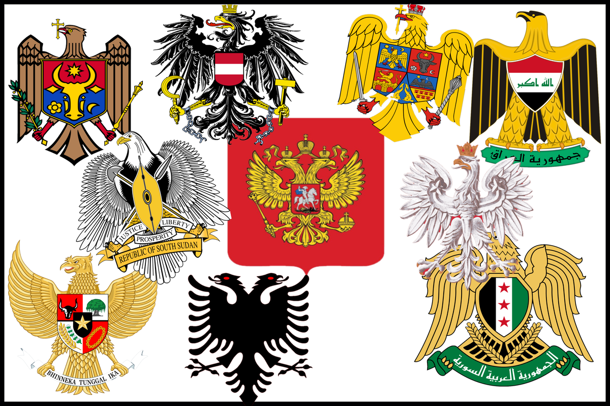 - Священная Римская империя: Император Фридрих I Барбаросса сделал черного двуглавого орла на золотом поле своим гербом в 1152 году, подчеркивая преемственность от римских цезарей. Позже он стал гербом самой Империи.
