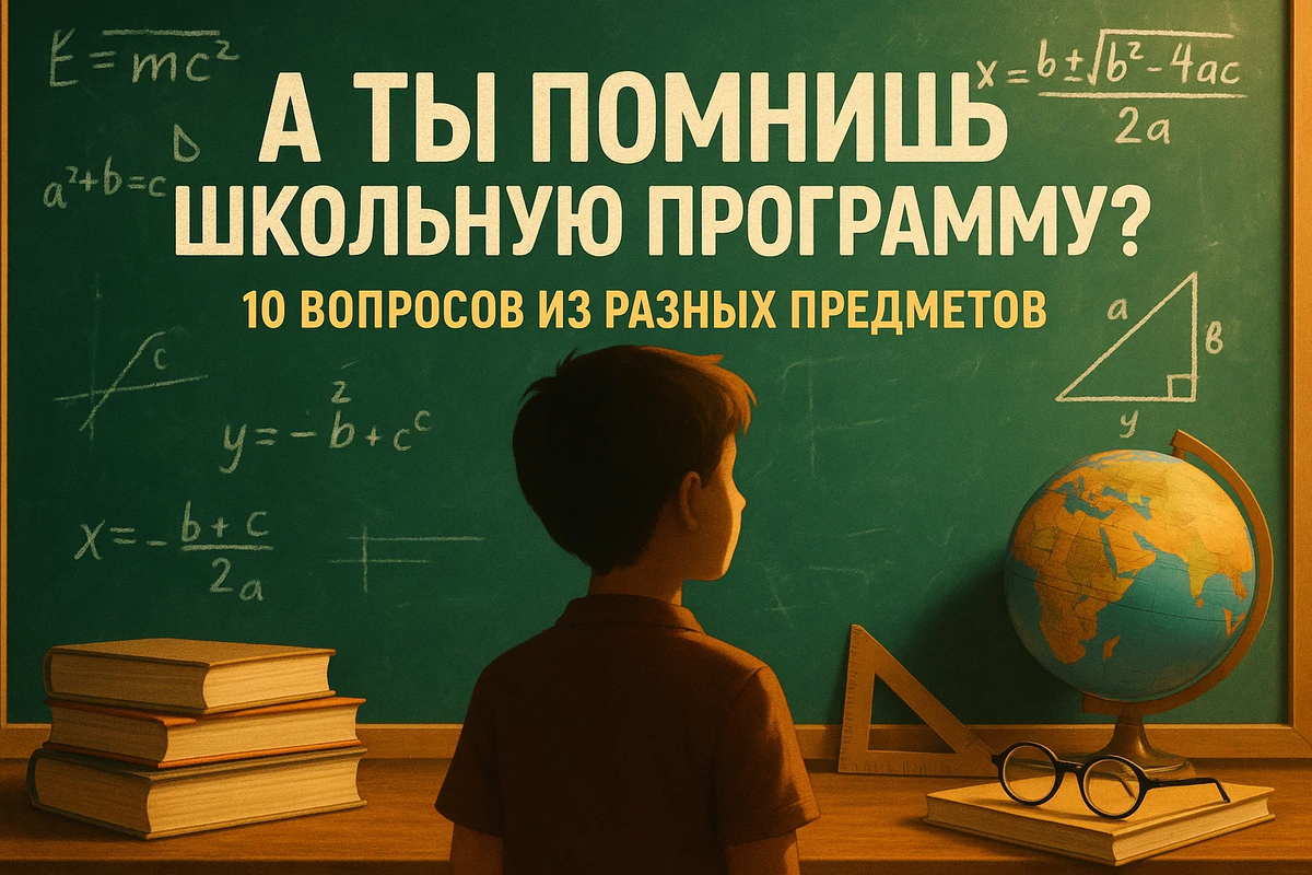 Мы составили мини-викторину: 10 вопросов по ключевым предметам — от математики до обществознания. Вспомни всё, чему учили — и узнай, на сколько баллов ты сегодня «потянул» бы школьную контрольную.