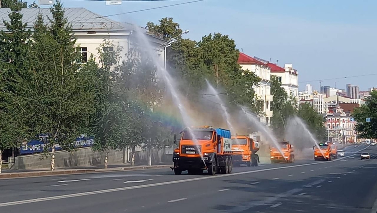 В связи с нынешней жарой коммунальные службы прибегают к методу аэрации. Специальные поливочные машины разбрызгивают воду не только на дорогу, но и вверх, тем самым охлаждая не только сам асфальт, но и воздух над ним, который сильно нагревается от дорожного покрытия. Это помогает избежать его повреждения и деформации. Ранее сообщалось, что выходные в Башкирии будут знойными.