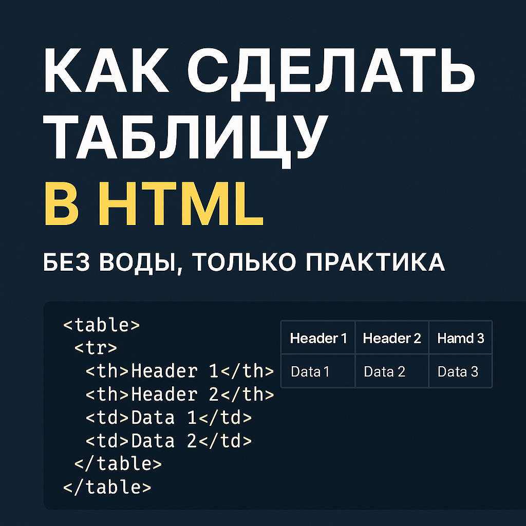Приветствую, коллеги!, вот вам реально рабочий гайд по таблицам — такой, какой я сам хотел найти, когда только начинал верстать. Никакой воды, только конкретика. 👉 `<table> <tr> <td>Ячейка 1</td> <td>Ячейка 2</td> </tr> </table>` Что получится: Ячейка 1 | Ячейка 2 👉 `<table> <tr> <th>Место</th> <th>Игрок</th> <th>Очки</th> </tr> <tr> <td>1</td> <td>Петров</td> <td>120</td> </tr> </table>` Просто запомните: Добавляем атрибут border: 👉 <table border="1"> Но лучше сразу учиться делать через CSS: 👉 <table style="border: 1px solid #000;"> Часто нужно в отчётах: 👉 `<table> <caption>Список сотрудников</caption> <thead> <tr> <th>№</th> <th>ФИО</th> <th>Должность</th> </tr> </thead> <tbody> <tr> <td>1</td> <td>Иванов И.И.</td> <td>Директор</td> </tr> </tbody> <tfoot> <tr> <td colspan="3">Всего: 1 человек</td> </tr> </tfoot> </table>` Но для данных — идеально! Если нужно быстро проверить таблицу — делаю так: За 30 секунд вижу все косяки. Попробуйте!