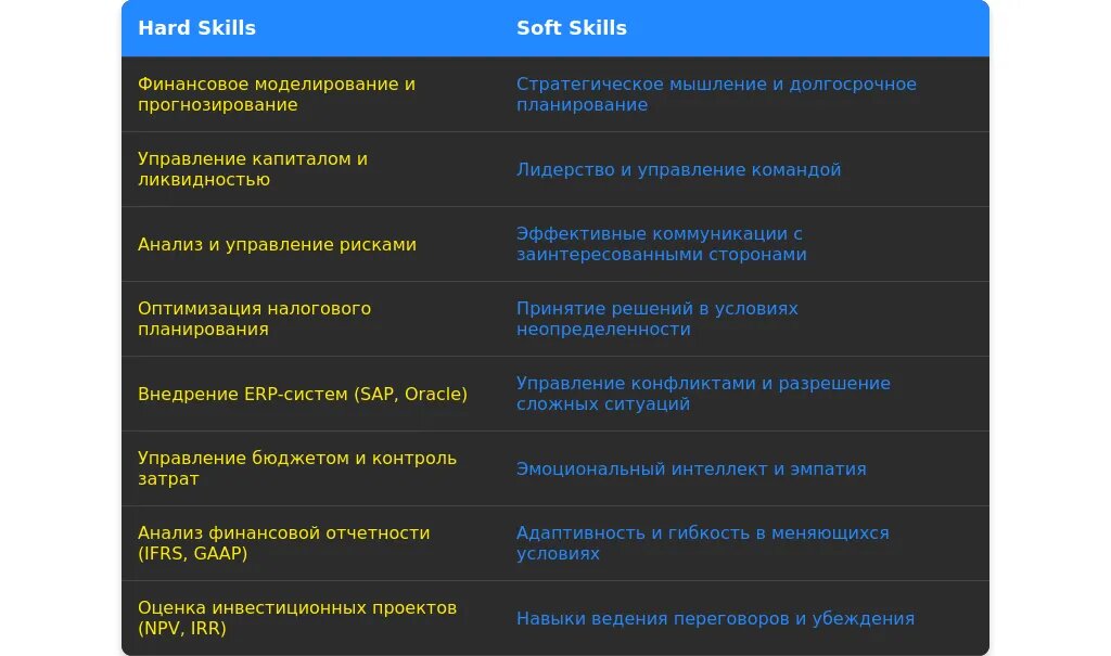 После: "Знание IFRS, бюджетирование, стратегическое планирование, управление командой, SAP, Oracle."