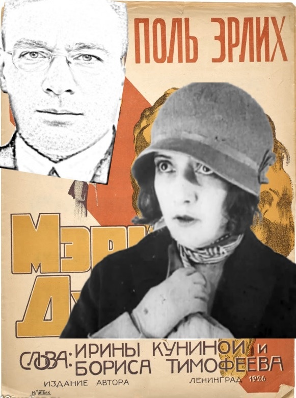 Вернемся все же к Борису Тимофееву. Одной из первых его работ с Ириной Куниной и Эрлихом стала песенка Мэри и Дуг, сочиненная в ритме вальса Бостон и навеянная американскими фильмами с Дугласом Фэрбенксом и Мэри Пикфорд. Макс Литвак, художник, с которым Эрлих работал постоянно, именно их изобразил на обложке нотного издания: