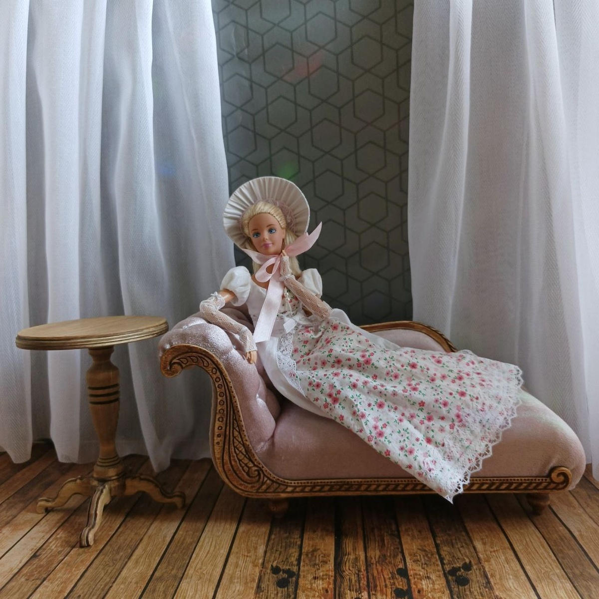 Честно, меня просто коробит, когда на явно детскую мебель усаживают дорогих сердцу или по стоимости кукол. Это всё равно, что в шикарно обставленной гостиной в жемчужных тонах повесить шторки-задергушки из ситца с подсолнухами. Или "Девятый вал" Айвазовского оправить в раму из фанеры, выпиленную ножовкой...