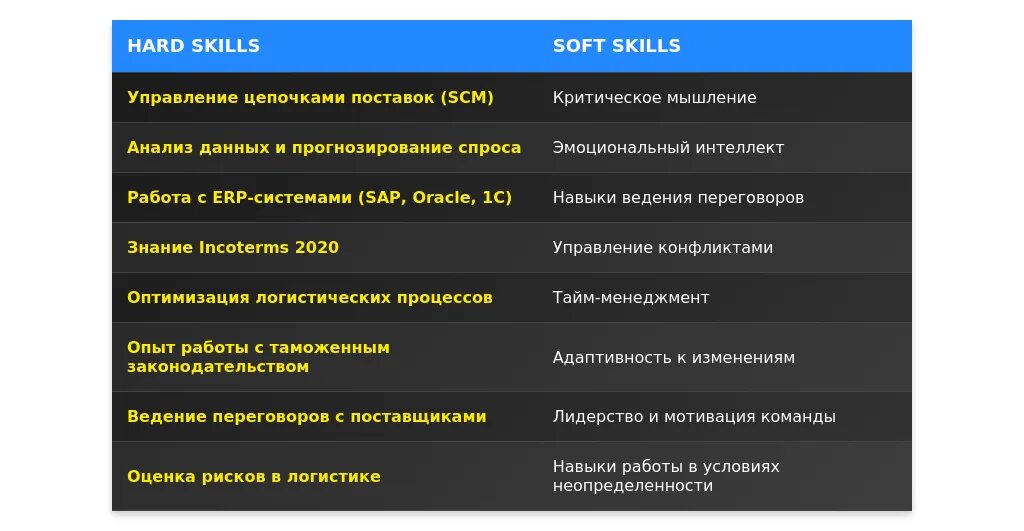 Ключевые фразы: "опыт работы с ERP-системами", "управление закупками", "ведение переговоров", "контроль логистических процессов".