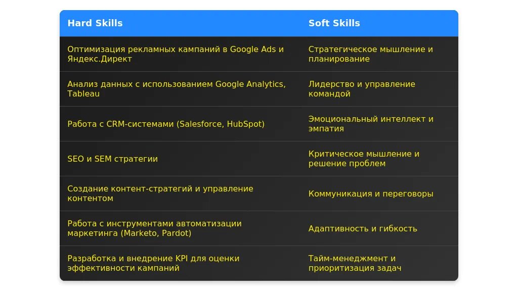 На что делать акцент: Аналитические навыки, владение инструментами (например, Google Ads, Canva), понимание основ маркетинга.