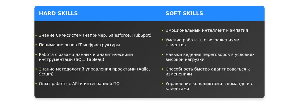 После адаптации: "Английский язык (Advanced), навыки работы с CRM-системами (Salesforce, HubSpot), управление проектами."
