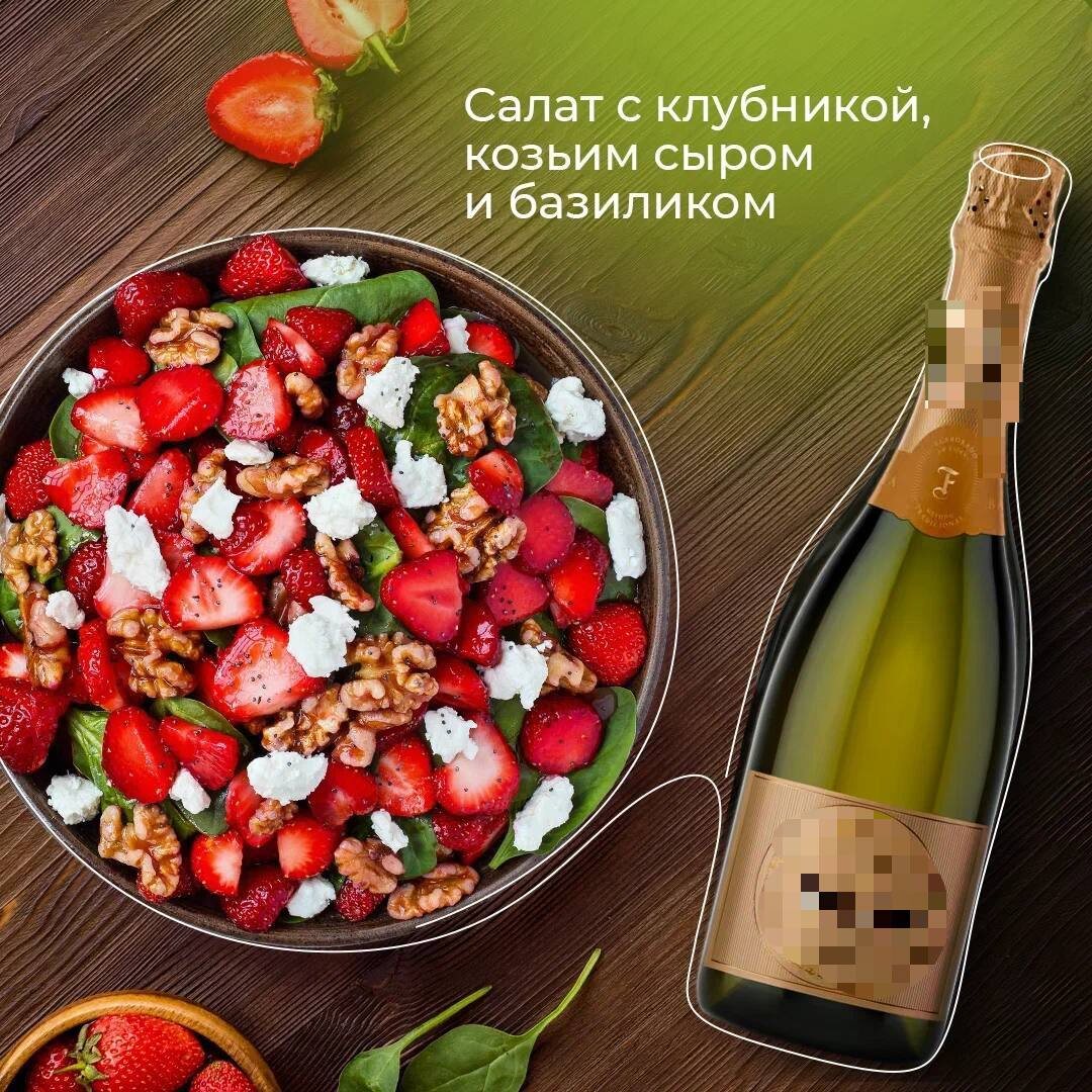 Салат с клубникой, козьим сыром и базиликом + белое игристое просто, изысканно, освежающе 🥂 Сочетание клубники и козьего сыра — не каприз модных ресторанов, а гастрономическая формула! Вам потребуются (2 порции): • 200 г клубники • 100 г козьего сыра • свежий базилик • горсть кедровых или грецких орехов • 2 ст. ложки оливкового масла • 1 ч. ложка бальзамического уксуса • соль по вкусу Подавайте с бокалом белого игристого полусухого вина! Выбрать вино можно в ВинЛаб с выгодными промокодами: 🥂 NPF7638 — скидка 11% на первый заказ 🥂 6PRF2264 — скидка 6% на каждый повторный заказ 🥂 WPERF4816 — скидка 10% на каждый заказ на «тихие вина» 🥂 10CLUB7597 — скидка 10% на каждый заказ на товары со значком Winclub Максимальная скидка: 3000 ₽ Промокоды действуют в интернет-магазине с последующим самовывозом 📍Теперь и в Ростове-на-Дону и Воронеже!