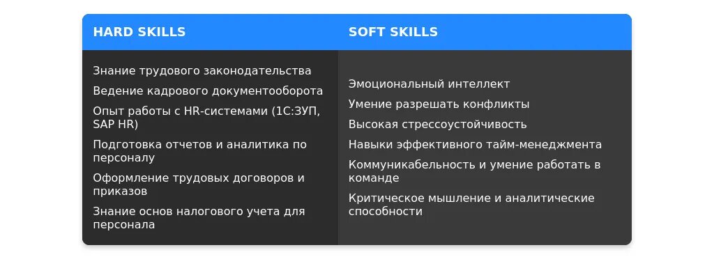 До адаптации: "Опыт работы в HR, знание трудового законодательства".
