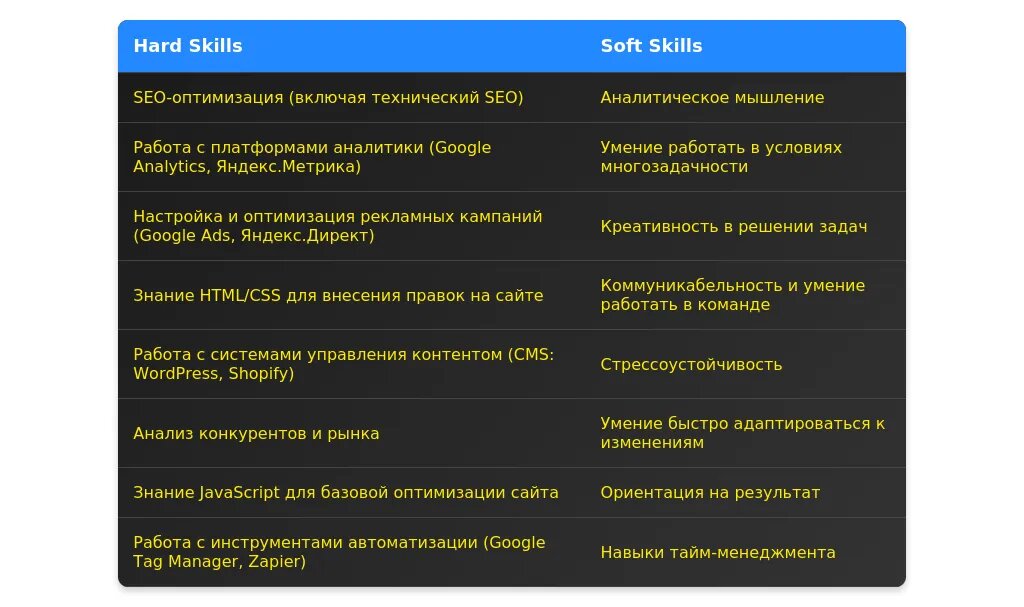 До: "Навыки работы с SEO, контекстной рекламой, веб-аналитикой."