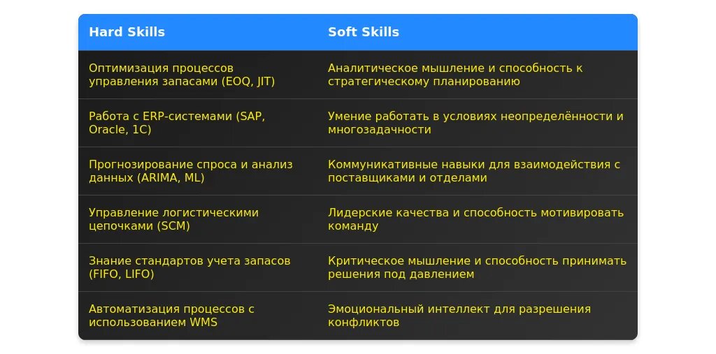 - Аналитическое мышление: успешно выявлял и устранял узкие места в логистической цепочке