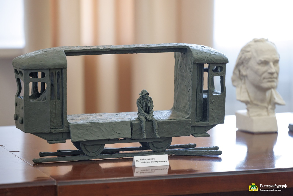 Победителем конкурса эскизов стал проект, представляющий собой скульптуру режиссёра, сидящего в пустом вагоне трамвая. Автор идеи хотел передать не только связь Балабанова с родным городом, но и его внутреннюю отстранённость, скромность и постоянное наблюдение за жизнью в поисках нового сюжета. Выбор трамвая как основного элемента памятника имеет глубокий смысл: