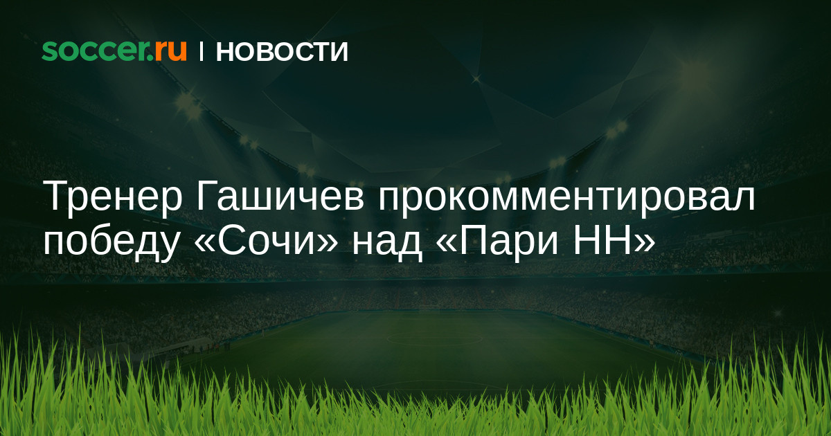«Сочи» по сумме двух стыковых матчей за право играть в РПЛ в следующем сезоне обыграл «Пари НН» — 1:2 в гостях и 3:1 дома. Во втором решающем противостоянии южную команду выводил на поле тренер Кирилл Гашичев, так как главный тренер команды Роберт Морено не приехал на игру по семейным обстоятельствам. Гашичев прокомментировал победу «Сочи»: Самое главное, что команда добилась победы, дошла до цели, к которой мы стремились. Моя задача была — не испортить. Мы даже не успели ощутить такого напряжения: мы пришли в сбалансированную команду, которая горела победой. Мы внесли небольшие коррективы, небольшие изменения.