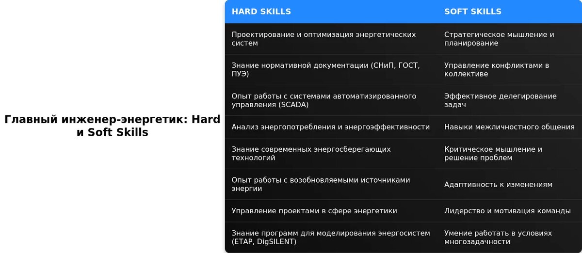 Анализ требований вакансии для главного инженера-энергетика