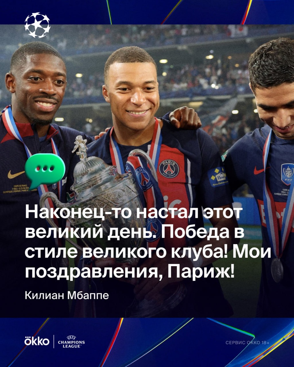 Мбаппе поздравил бывший клуб с долгожданной победой 🤗 Сам Килиан все еще без трофея ЛЧ...