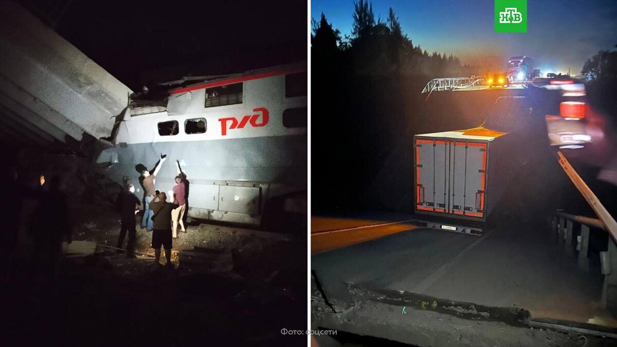 [ Смотреть видео на сайте НТВ ] Дополнительные силы МЧС направлены к месту обрушения автомобильного моста в Брянской области. Как сообщили в ведомстве, пожарно-спасательные подразделения МЧС России работают на месте обрушения. В район проведения работ направлены дополнительные силы МЧС России, аварийно-спасательное оборудование, а также световые башни для работ ночью. Пострадавшим оказывается помощь. Ранее губернатор Брянской области Александр Богомаз сообщил, что в районе одного из участков федеральной автодороги А240 произошло ДТП «с участием автомобилей и пассажирского железнодорожного состава». Как пишут СМИ, возле села Выгоничи на пассажирский поезд Москва — Климово обвалился мост с автомобилями. [ Смотреть видео на сайте НТВ ]
