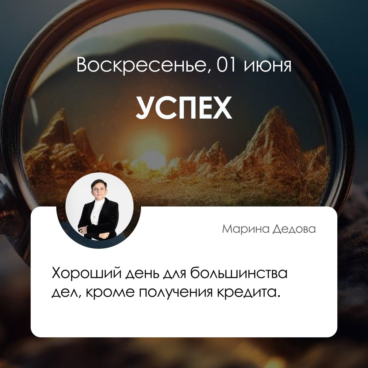 ✅ Прогноз на 01 июня, воскресенье Успех Хороший день для большинства дел, кроме получения кредита и подачи заявления в судебные инстанции. Особенно подходит для романтики, общения, договоренностей, примирения. Более внимательными и осторожными стоит быть людям, рожденным в год Козы. Лучшие часы: Тигр (03-05), Лошадь (11-13), Обезьяна (15-17) Худшие часы: Коза (13-15), Петух (17-19) Пустые часы: Дракон (07-09), Змея (09-11) *Прогноз дня указывает общие тенденции. Для важных событий даты лучше выбирать индивидуально. Лучшие часы – хорошее время для многих дел. Худшие часы – не подходят для большинства начинаний. Пустые часы – достаточно бесполезное время для важных дел.