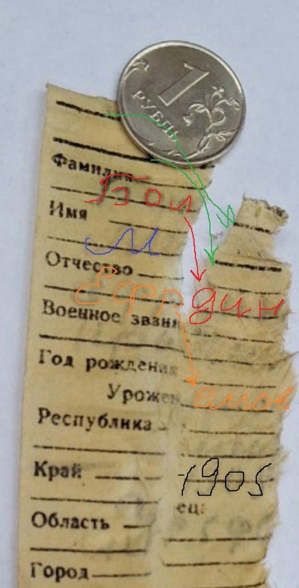 Подо Ржевом найдены останки солдата из Оренбургской области, погибшего в годы Великой Отечественной войны ➖Вместе с солдатом был найден и заполненный посмертный медальон, сведения в котором сохранились лишь частично. ➖Известно, что красноармеец был призван на фронт из Сергиевского сельсовета Павловского района Чкаловской области. Родился он в 1905 году, а погиб в 1941 году. ➖Сейчас поисковики отряда «Подвиг» ищут родственников солдата. Возможно, вы не знаете имен с этих фото, но у вас есть бабушки и дедушки, которые еще могли слышать об этих людях в своих семейных разговорах. А может быть о них или их детях что-то знают сельские учителя, которые работали еще в советское время. Или может быть в вашем районе есть школьные Музеи Боевой Славы, которые, как показала поисковая практика, до сих пор еще бережно хранят Память о тех солдатах. А может быть, вы сами - потомки этого солдата, просто вы пока еще об этом не знаете. Хотим передать медальон солдата в его семью. Вот, что удалось п