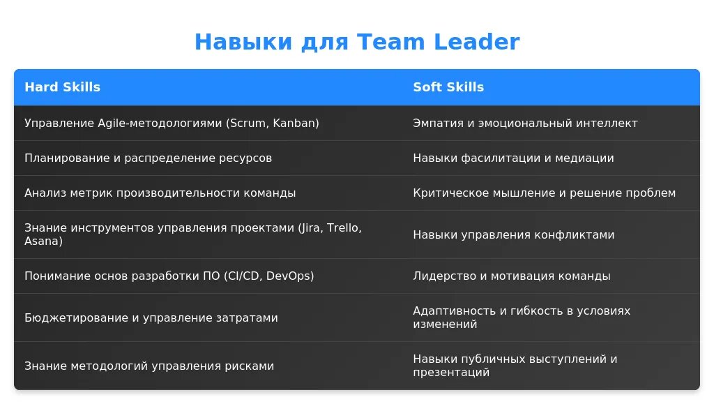 Личные качества (soft skills) играют ключевую роль в управлении командой. Они помогают выстраивать отношения, решать конфликты и мотивировать сотрудников.