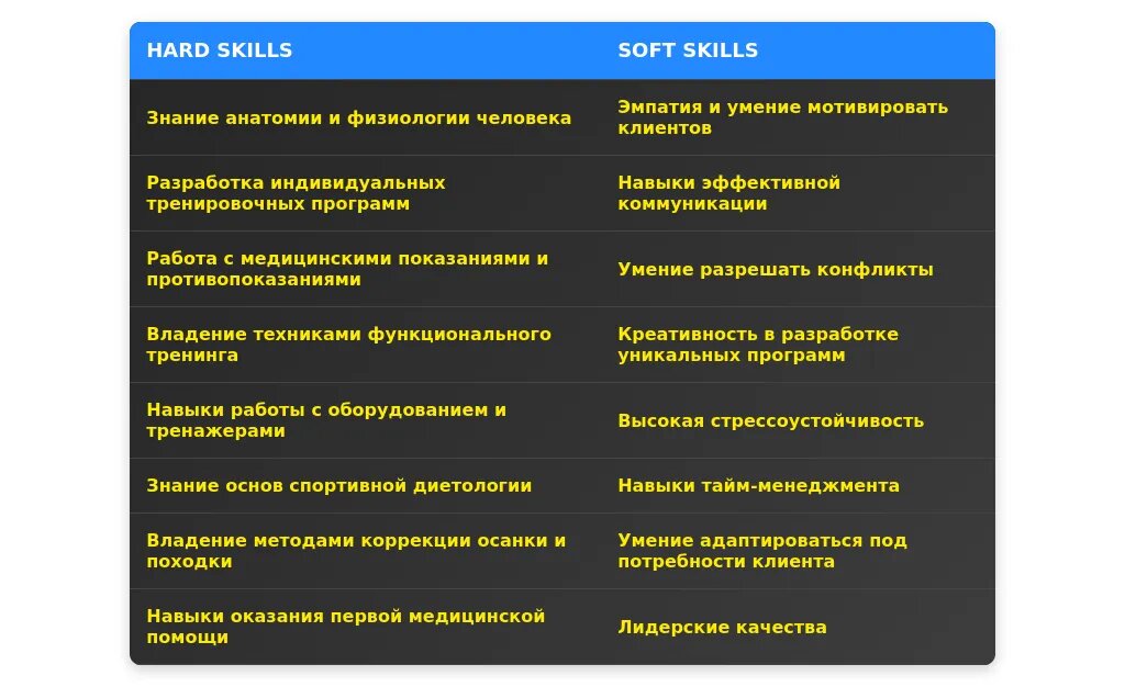 Анализ вакансии для профессии "тренер по фитнесу"