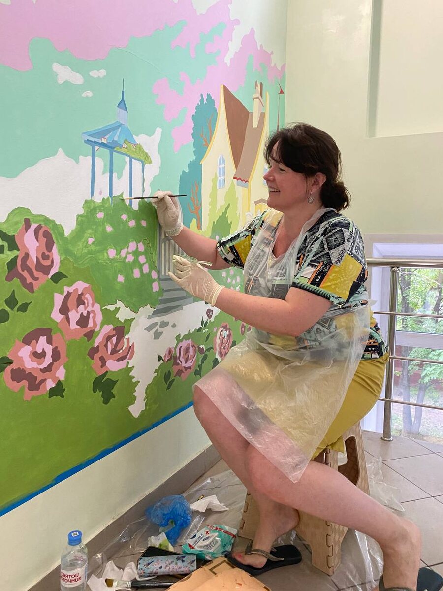 Сегодня вместе с волонтёрами проекта «Весёлый коридор» расписывали стены в больнице им
