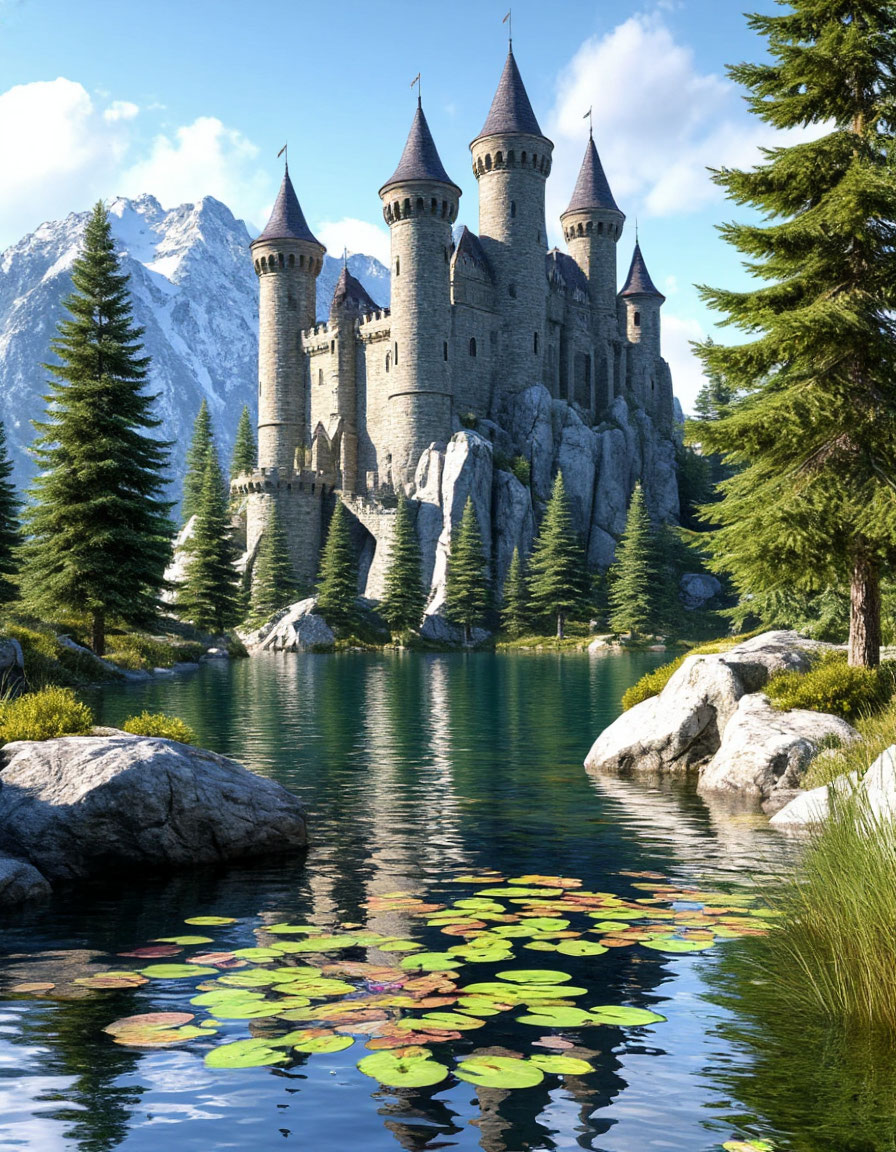 Озеро было совсем рядом с замком: надо было только спуститься с подножия горы, на которой построен замок, и сойти немного вниз. Водоем окружали каменные валуны, кусты можжевельника, ели и сосны, росшие здесь повсюду. На поверхности воды плавали листья водяных лилий, но самих цветов еще не было – они должны были появиться летом.