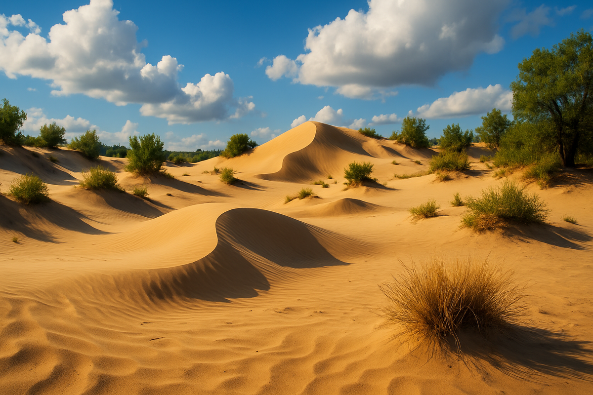 В сорока километрах севернее Волгограда раскинулась неожиданная картина - 550 гектаров светлых барханчиков и зыбких кучугур, окружённых ковыльными степями. Местные называют этот участок «мини пустыня Волгоград», учёные - Даниловскими песками, а туристы приезжают, чтобы пройтись босиком по горячему кварцевому «шелку» и услышать, как скрипят под ногами по-сахарному сухие песчинки.