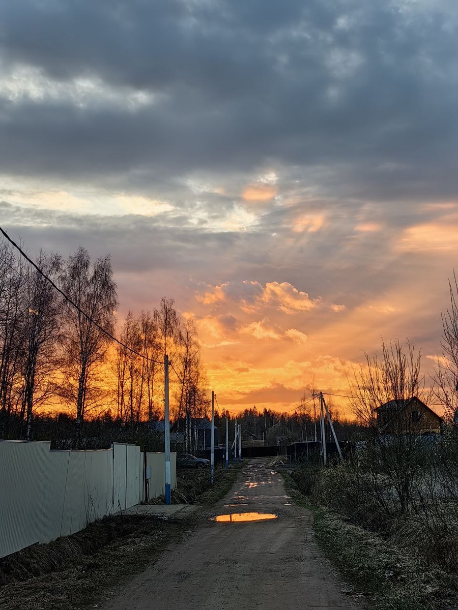 Весенние желто-оранжевые отсветы заката (Комарово, Клин) #sky #blue #sunset #reflections #yellow #orange #grey #clouds #forest #rural #landscape #Komarovo #Klin #spring #April #небо #голубое #закат #отсветы #желтые #оранжевые #серые #облака #Комарово #Клин #лес #сельский #пейзаж #весна #апрель