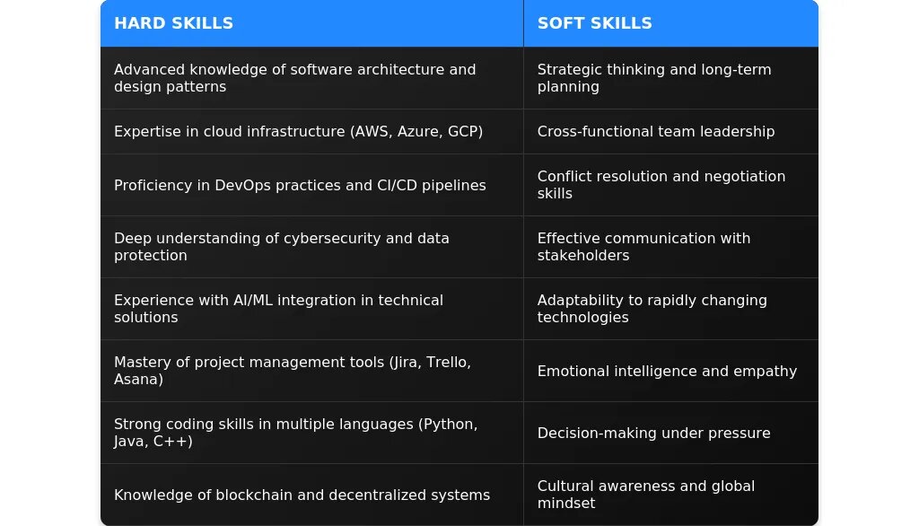 Стратегическое мышление: разработал долгосрочную техническую стратегию компании, которая привела к росту прибыли на 25%.