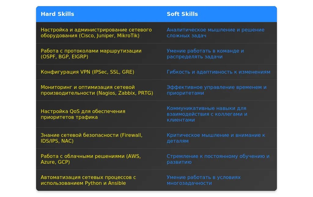Анализ вакансии для профессии "инженер по сетевым технологиям"