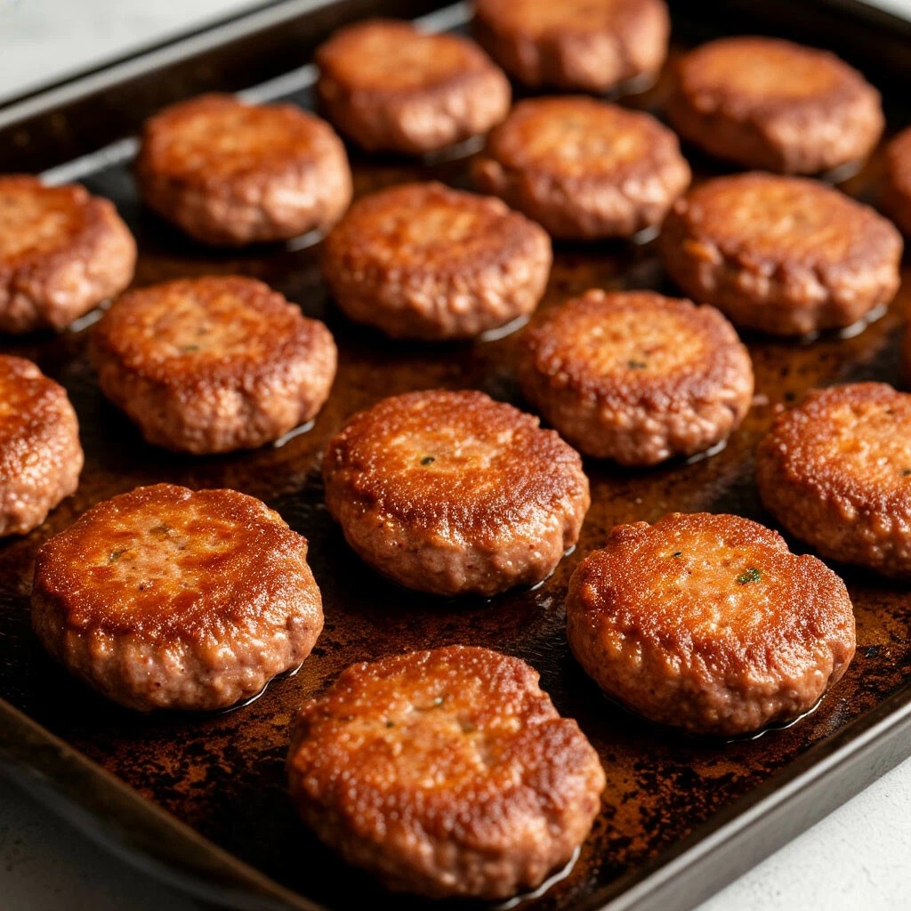 Мой шеф-повар-консультант Оксана опять поделилась интересным рецептом. Теперь это котлетки, запечённые в духовке. Я люблю такие блюда, которые делаются впрок. Можно поесть свежими, а часть отложить в морозилку. И в нужный момент, когда наскоро нужно приготовить ужин или собрать обед, просто достать их и разогреть. А гарнир может быть любым. Всё-таки гарнир приготовить проще. Фарш я предпочитаю делать из трёх видов мяса: беру 2 части говядины, 1 часть свинины и 1 часть филе курицы. Добавляю туда лук. Плюс соль и перец по вкусу. Из свежего фарша можно сделать сразу большое количество полуфабрикатов, которыми можно легко разнообразить своё меню. Часть заготовок можно сделать оставить сырыми. Это, например, тефтели замороженные. Или пельмени. Или фрикадельки. Ещё часть фарша можно использовать на то, чтобы приготовить, например, котлеты. И заморозить их уже готовыми. В котлетный фарш можно добавлять размоченный в молоке мякиш белого хлеба, тёртый картофель, размоченные в молоке ов