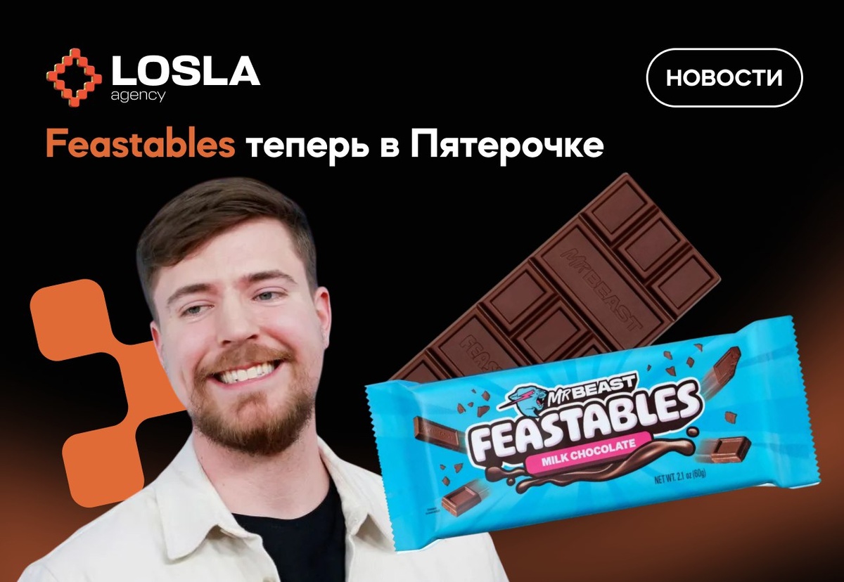 🍫 Шоколадка от Мистера Биста — теперь в «Пятёрочке» Feastables добрались до нас! Продаются в «Пятёрочке» за 162 рубля — пока что почти даром, учитывая хайп и маркетинг. Бежим пробовать и проверять, стоит ли этот батончик миллионов просмотров. 🔸 LOSLA MEDIA — следим за трендами, пока они не улетели с полок.