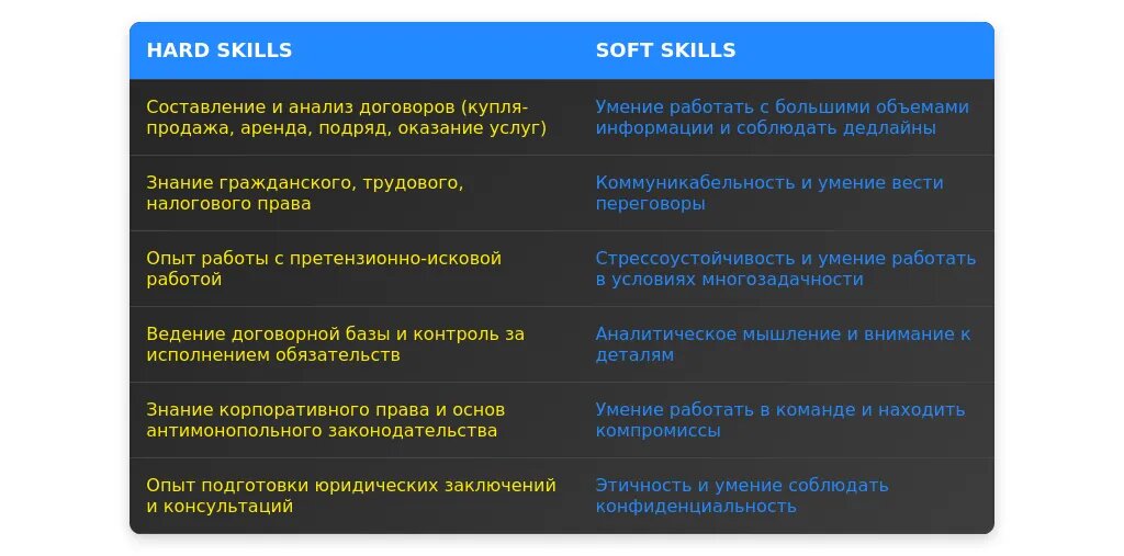 Пример 4: Вакансия требует знания корпоративного права. Это может быть сигналом к тому, что работодатель ожидает опыта работы с внутренними регламентами и уставами компаний.
