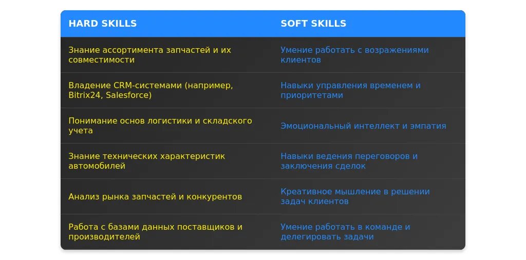 Анализ требований вакансии для менеджера по продаже запчастей