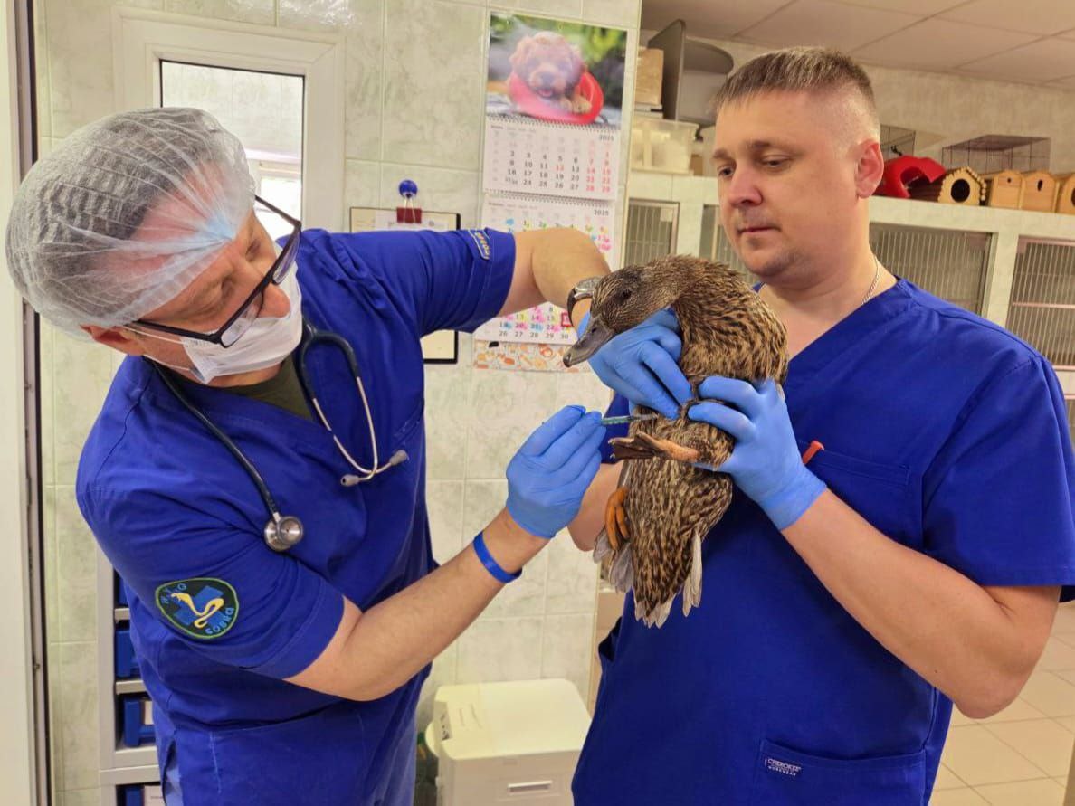 Утки - привычные обитатели московских водоёмов и парковых зон. Кряквы, огари, нырки. Птицы - настоящее украшение наших прудов и любимцы московской детворы. Вспомните, как вы сами не раз ходили в выходные в парк, чтобы покормить неугомонных и смешных уток, посмотреть на маленьких забавных утят. ️В парке Ходынское поле с одной из постоянных обитательниц местного водоёма случилась беда. Ещё вчера она вместе со своими утятами радовала посетителей парка, а сегодня обнаружилось, что почти все утята погибли, а мама-утка ранена и не может передвигаться. Сотрудники парка немедленно связались с нами и привезли пострадавшую птицу на осмотр. Оказалось, что у неё сложный перелом костей голени. Операция прошла успешно. ️ Сейчас за птицей ухаживают волонтёры и через две недели ей предстоит контрольный осмотр и рентген. И вот, волонтёры привезли крякву на контрольный осмотр Алексею Сергеевичу. Наш травматолог остался доволен состоянием. Следующий осмотр планируется недели через три. Помощь травми