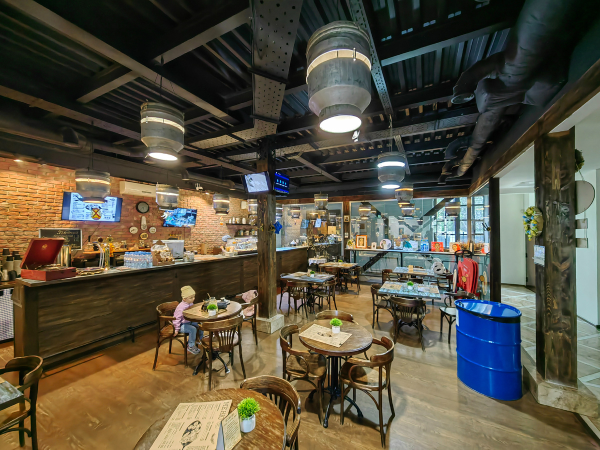Небольшое дополнение ко вчерашней заметке про Музей гвардейских стрелковых полков при Сергиевской церкви. В здании помимо музейного пространства размещается любопытная трапезная. Привлекла она меня не столько едой (меню там стандартное), а своим интерьером. Многочисленные люстры в ней сделаны из молочных бочек. Идея настоятеля церкви, а именно он предложил такой дизайн, весьма нетривиальна для религиозных учреждений. Обычно интерьеры в таких местах довольно аскетичные. Администратор-кассир сказал, что такой стиль был выбран не случайной. Это связано с тем, что при церкви работает ферма. А молоко - это символ фермерского хозяйства. Теперь есть идея сделать в днищах бочек звёздочки, чтобы свет отражался на потолке, символизируя, тем самым, небеса. Кроме люстр-бочек зал для приёма пищи украшают многочисленные витражные композиции. Ранее они размещались в витражной мастерской местной жительницы Наталии Александровны, изготовившей их. Но были переданы в дар храму. Где именно находится (нахо